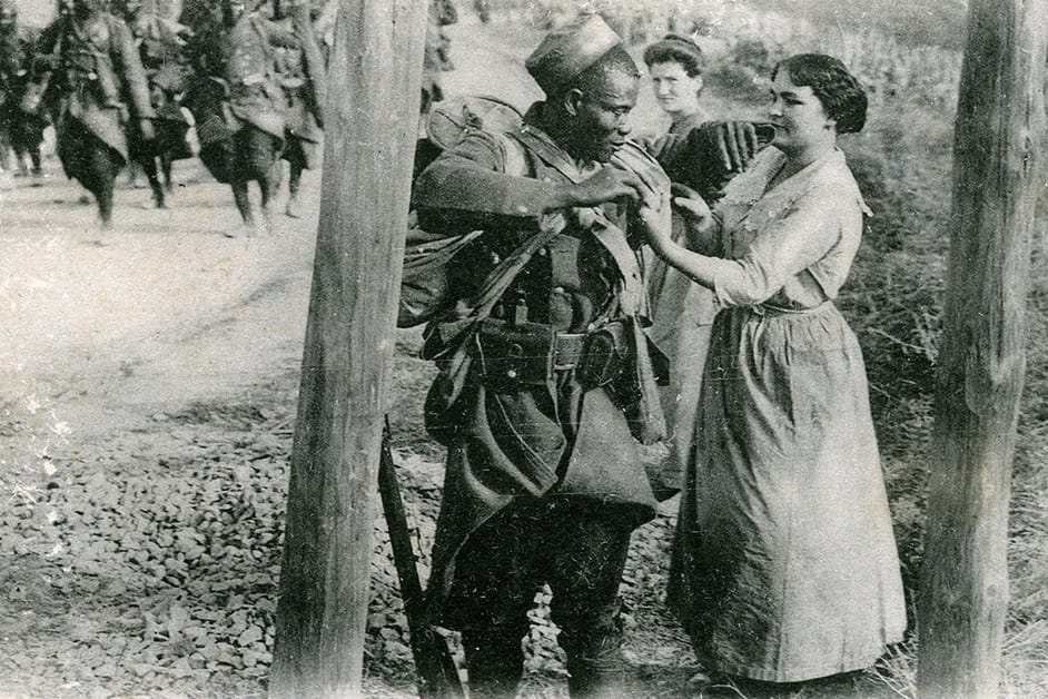 La Seconde Guerre mondiale révèle une mise à distance systématique des tirailleurs sénégalais, qui dépasse la simple question militaire. À leur arrivée en France occupée, ils sont confinés dans des camps vétustes, isolés des populations blanches et privés de salaire, tandis que certains officiers coloniaux collaborent avec l’occupant nazi. Cette mise à l’écart n’est pas seulement logistique : elle répond à une logique sociale et raciale. Les autorités françaises craignent que ces hommes, après plusieurs années sur le territoire, puissent nouer des liens avec des femmes blanches et rester sur place, constituant un risque pour l’ordre colonial et la hiérarchie raciale. La crainte des couples mixtes illustre comment le contrôle du corps et de la sexualité des soldats noirs devient un instrument de domination, qui vise à préserver la « pureté » des frontières sociales et raciales de la métropole.
